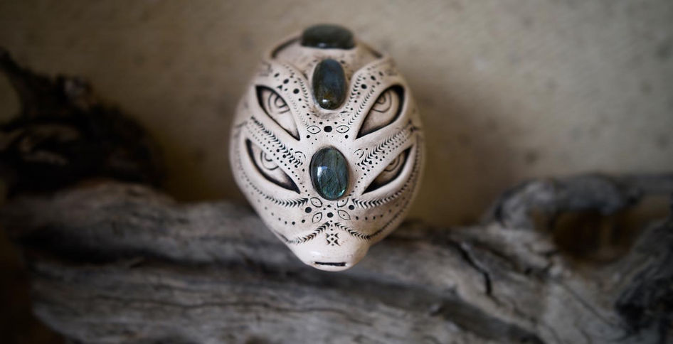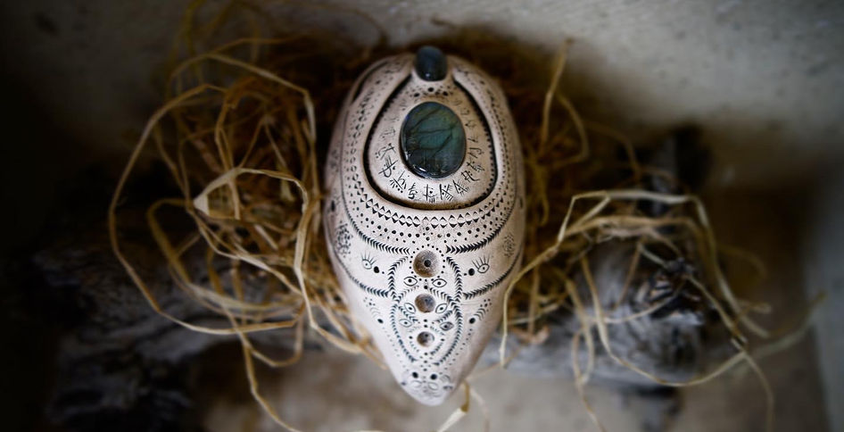 First Segment Ocarinas are designed as single-noted instruments. During the manufacturing process, a special technique is used to imprint a frequency of 963 Hz loaded to the clays memory, which becomes a fundamental step in completing the design, as it is then complemented with specific natural stones according to the client's request.